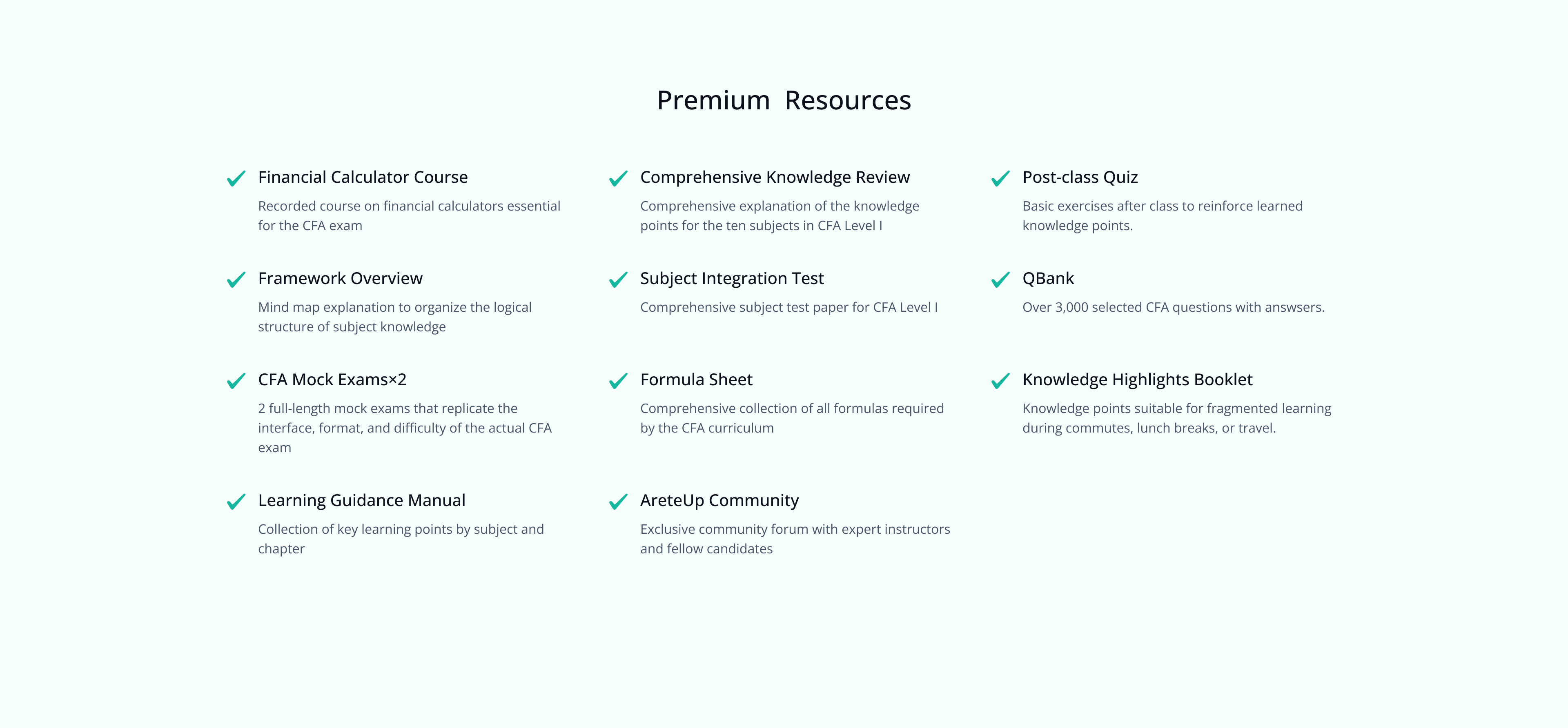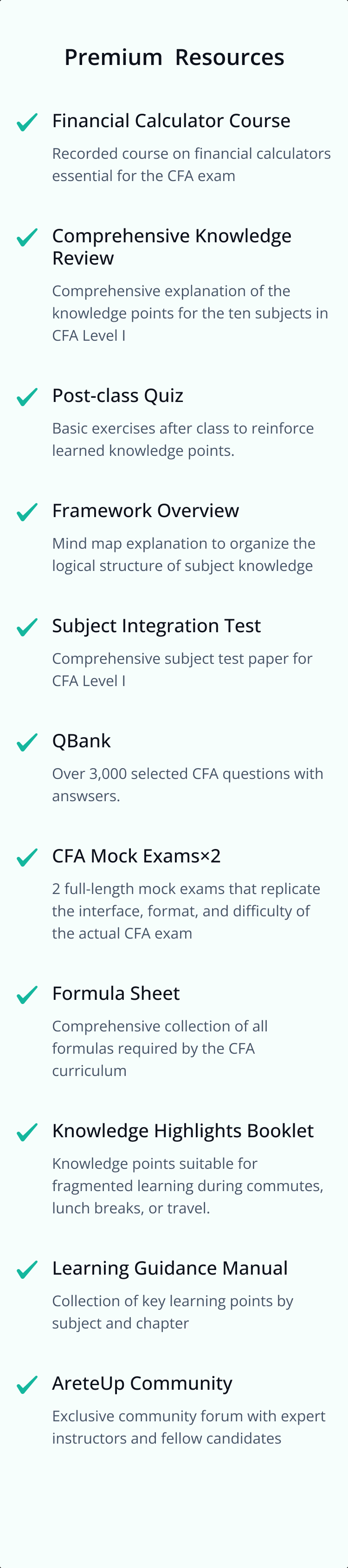 The QBank contains over 3,000 high-quality questions, covering various knowledge points and difficulty levels. These questions are meticulously crafted by a team of PhD-level researchers, ensuring the scientific rigor and precision of the content. Areteup is dedicated to providing learners with top-notch study resources to help them excel in the CFA exams. Whether it’s mastering fundamental knowledge or enhancing test-taking strategies, Areteup’s QBank offers strong support for students.